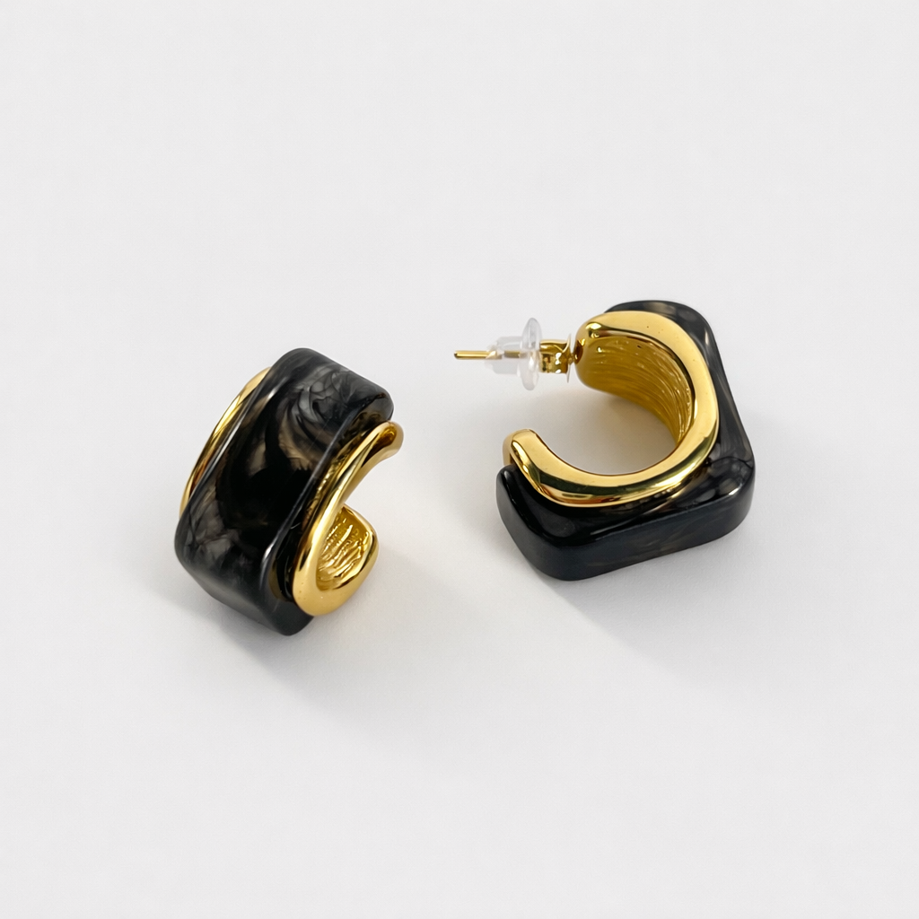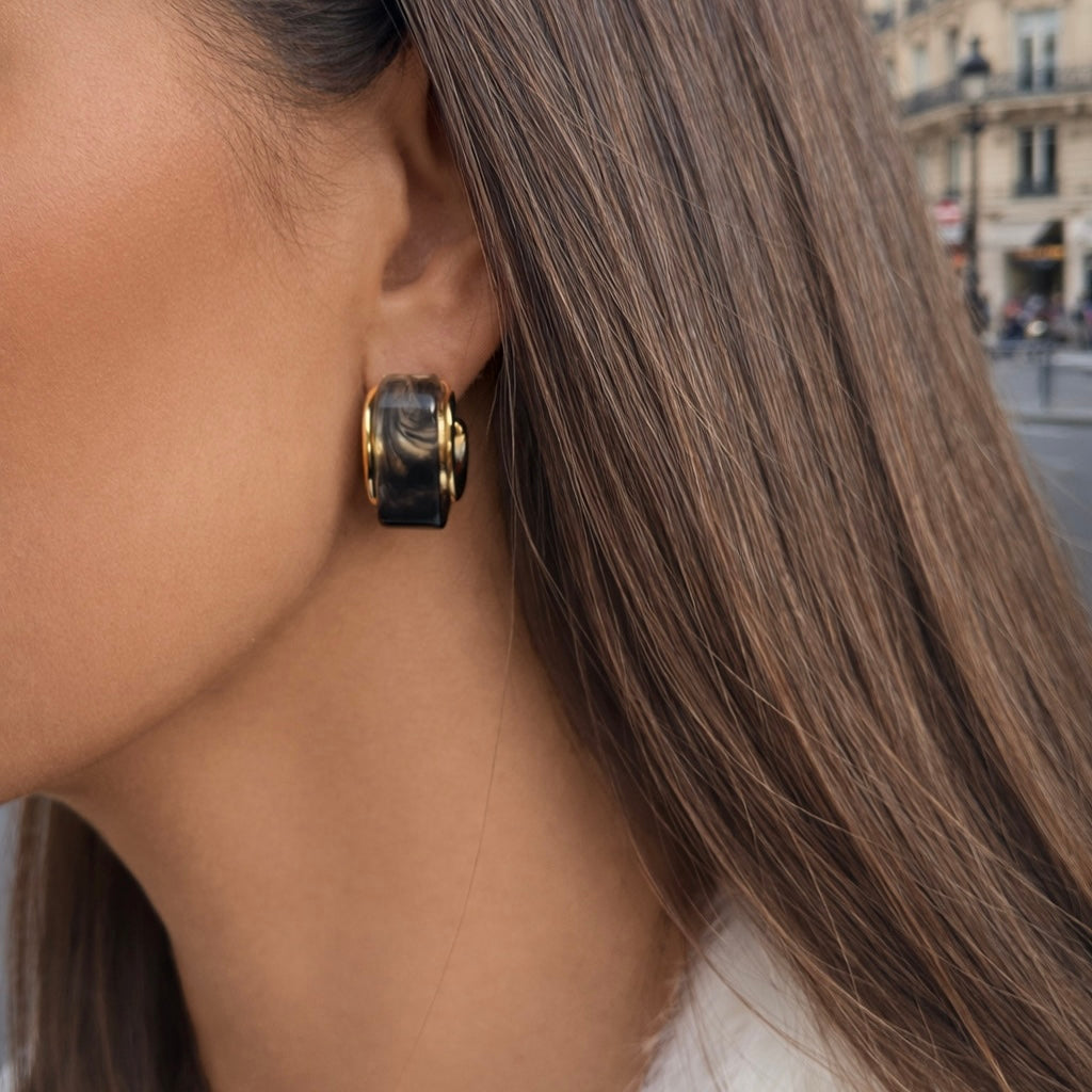 Caractéristiques : résine + acier inoxydable 316L hypoallergénique, finition en plaqué or.
