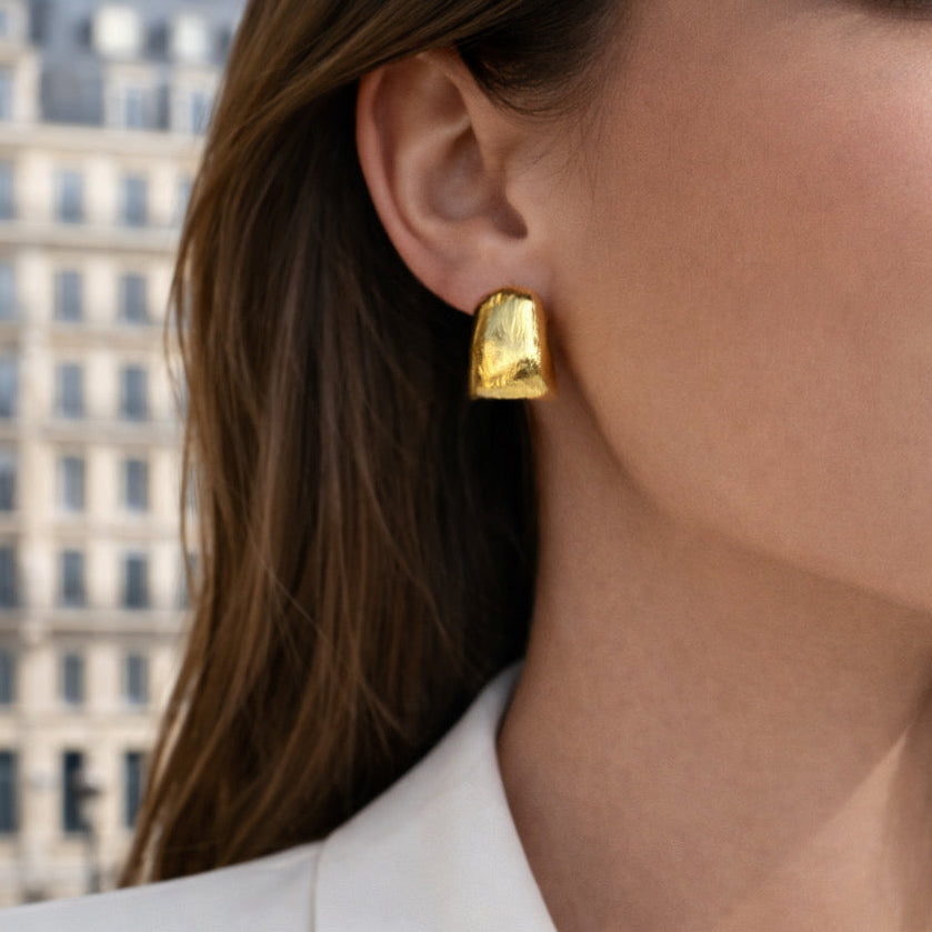 Caractéristiques : acier inoxydable 304 hypoallergénique, finition en plaqué or martelé.