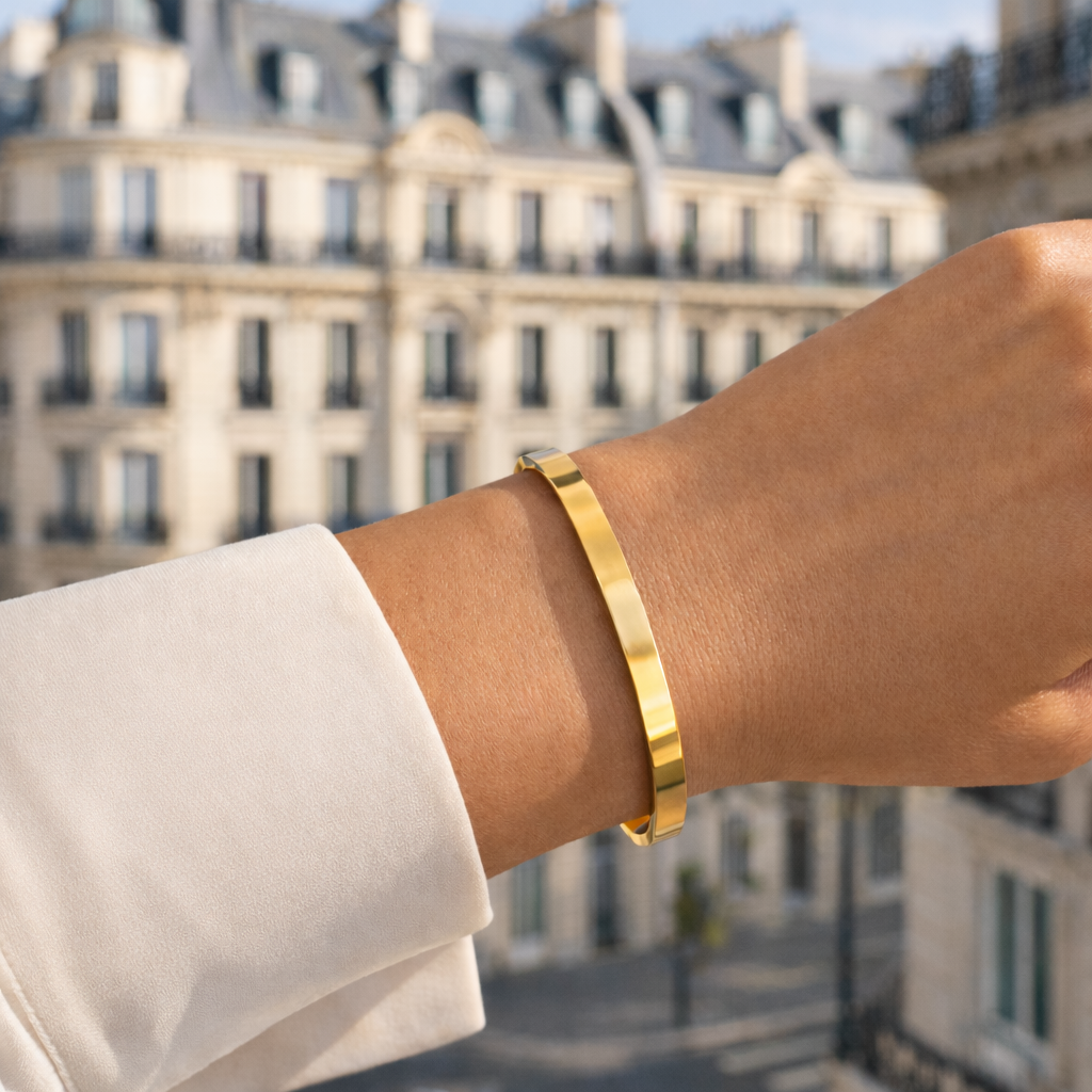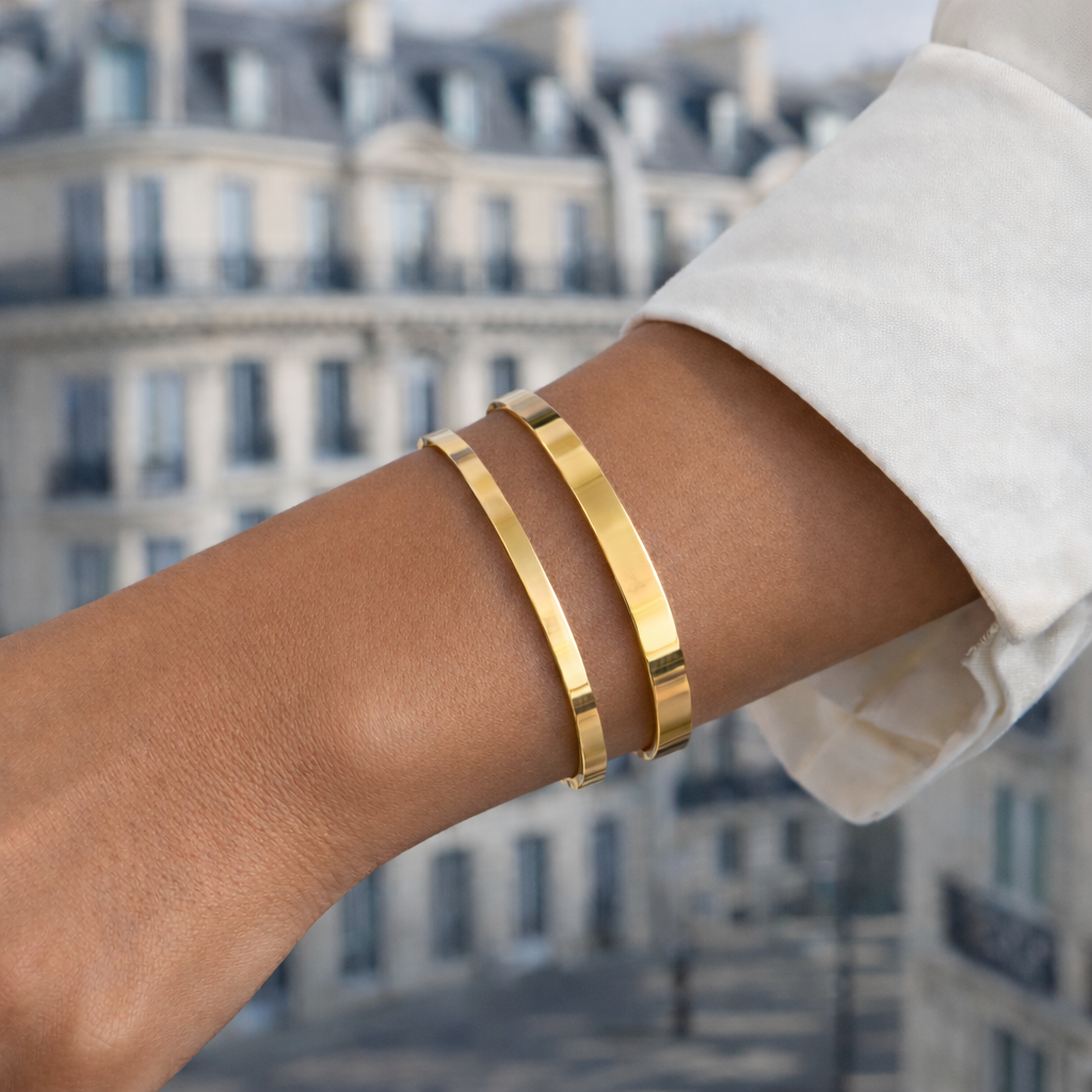 Le jonc SONYA est disponible en couleur or et argent, en taille XS ou S.